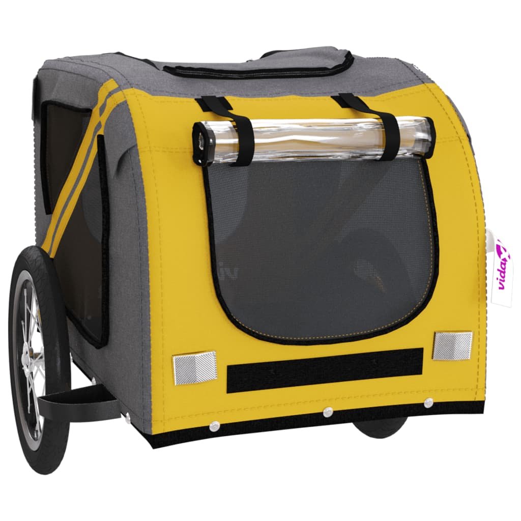 Hondenfietstrailer oxford stof en ijzer geel en grijs