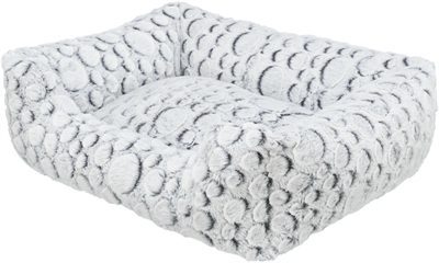 De Trixie Mand Mila Hoekig Pluche Wit/Grijs 50X40 cm is een originele hondenmand met een leuk patroon en zachte structuur pluche, met slipvaste onderkant. Deze mand is een ware blikvanger in jouw huis! De bijzondere stof heeft een leuk patroon van cirkels en is daarnaast heerlijk comfortabel door de zachte pluche structuur. De polyestervlies vulling zorgt voor voldoende steun en op de rand kan de hond fijn zijn kop laten rusten. Bovendien zorgen de lage instap in de rand en slipvaste onderkant dat het dier zonder moeite in- en uit de mand kan stappen.
