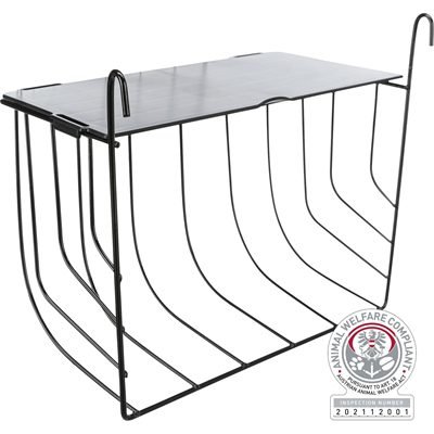 De Trixie Hooiruif Hangend Met Deksel 25 x 12 x 18 cm is een metalen hooiruif voor konijnen en knaagdieren, eenvoudig op te hangen en met kunststof deksel. Dieren hebben nog wel eens de neiging om in de hooiruif te klimmen en zichzelf zo te verwonden, en met deze handige hooiruif met deksel voorkom je dat! Deze ruif is gemaakt van gepoedercoat metaal en eenvoudig in de kooi op te hangen. Op deze manier blijft het hooi langer fris en zal het beter gegeten worden, essentieel voor een goede darmwerking van konijnen en knaagdieren!