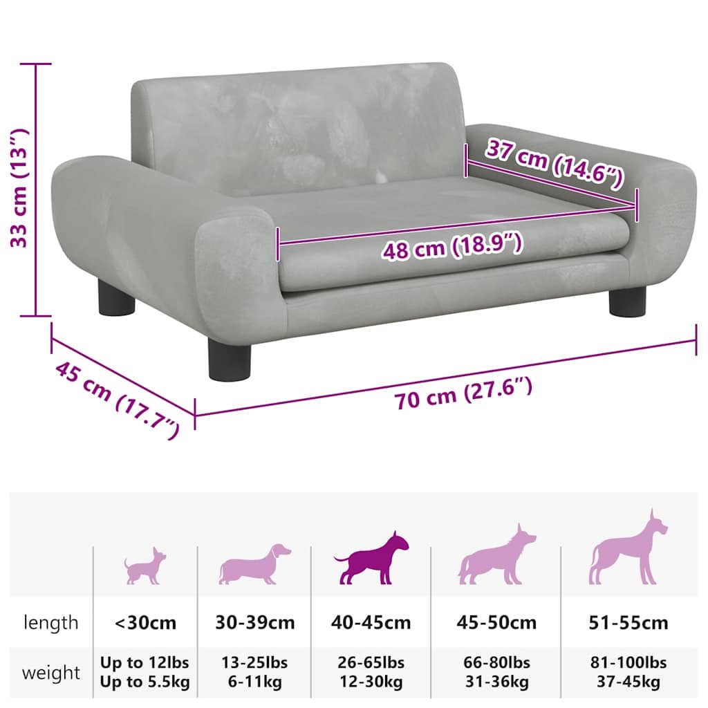 Zoonatie Hondenmand 70x45x33 cm fluweel lichtgrijs