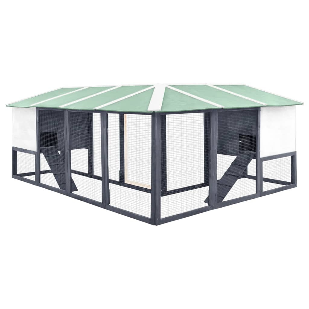 Het konijnenverblijf heeft een uitgebreid ontwerp met twee huizen en een zeer grote ren met gegalvaniseerd draadgaas om je dieren in de gaten te houden en onverwachte ongelukken te voorkomen. Het zorgt er ook voor dat ze voldoende frisse lucht krijgen. Het hok is gemaakt van massief vurenhout, waardoor het stabiel en duurzaam is. Ook is het kanteldak bekleed met waterafstotende stof, waardoor de binnenkant droog blijft. De anti-sliphelling leidt van de benedenverdieping naar de bovenverdieping.