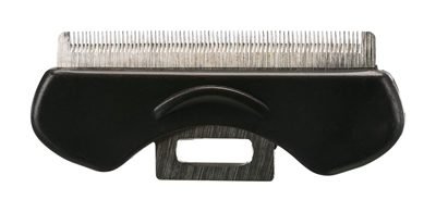Heeft jouw hond een erg dikke vacht, last van vervilting of veel losse haren in de ondervacht die in de vacht blijven steken? Dan is deze Trixie Carding vachtkam ideaal. Deze handige hondenkam verwijdert moeiteloos overtollig haar uit de onderwol. Ook is hij bijzonder geschikt voor het eenvoudig ontvilten en uitdunnen van de vacht. Je kunt de opzetstukken makkelijk wisselen door middel van het klikmechanisme aan het handvat, dat is uitgevoerd met een slipvaste rubberen coating. Zo is het comfortabel kammen voor zowel jou en je hond, of je paard, want ook daarvoor is deze kam geschikt!