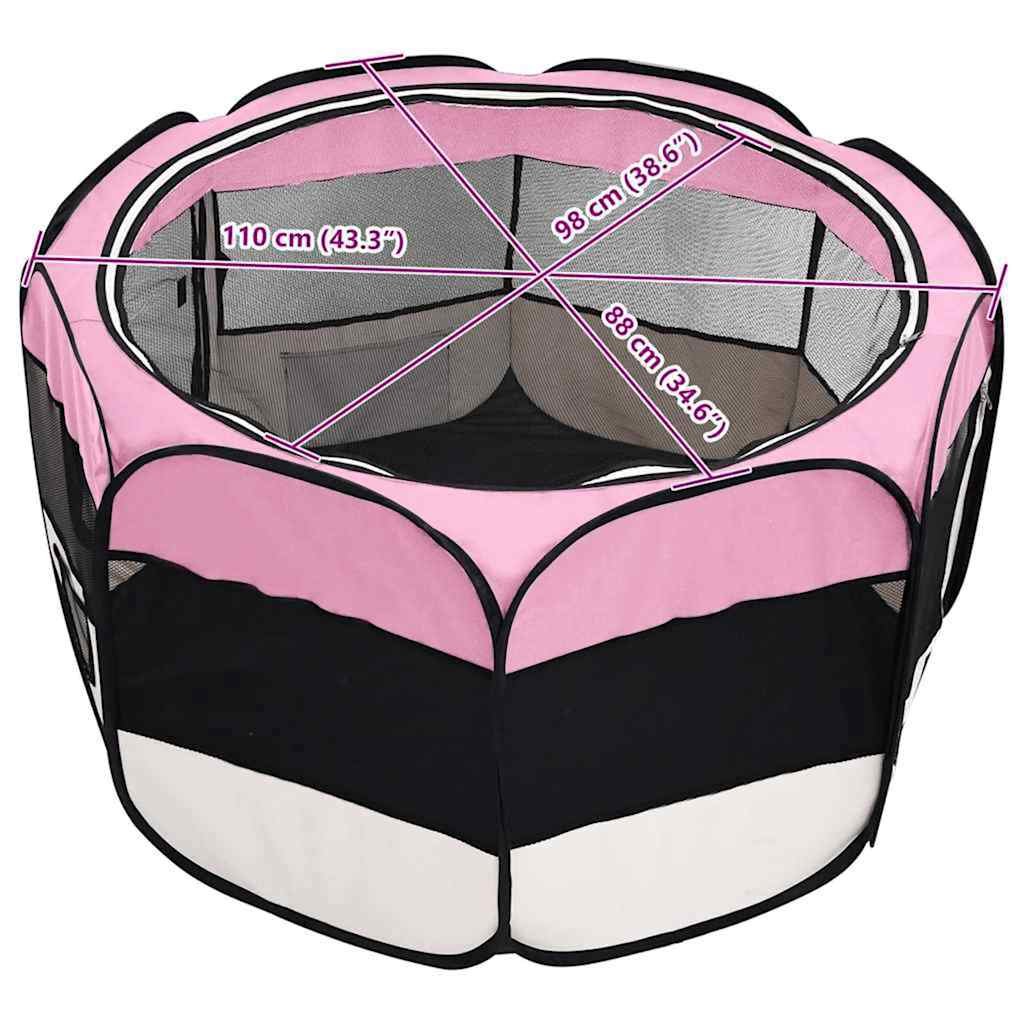 Zoonatie Hondenren inklapbaar met draagtas 110x110x58 cm roze