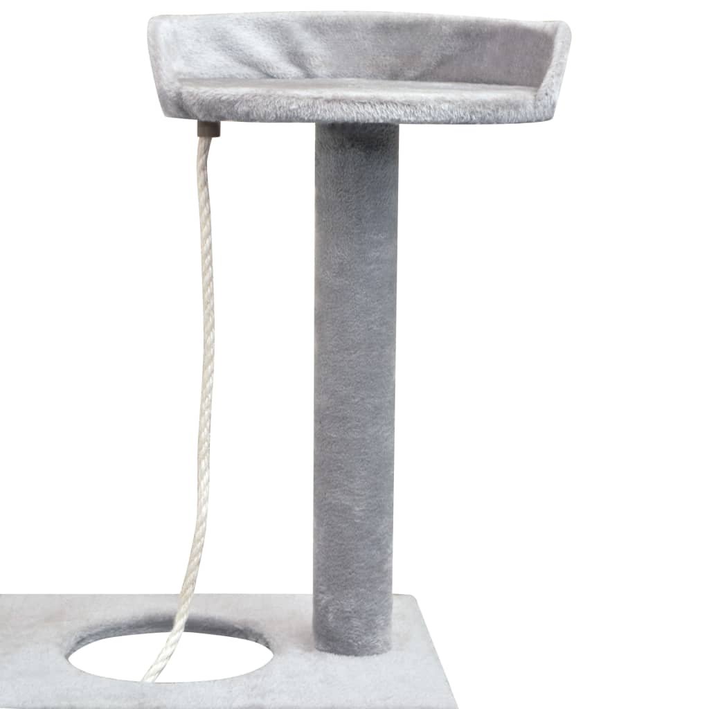 Uw kattenvriendjes kunnen hun klauwen scherper maken met de krabpalen die met sisaltouw omwikkeld zijn. Dit zorgt voor een gezonde uitlaatklep voor de krablust van uw kat. Ze zullen het ook heerlijk vinden om achter elkaar aan te rennen terwijl ze van en op dit leuke speelmeubel springen. Onder het bovenste platform hangt een speelgoedtouw dat uw nieuwsgierige katten zal vermaken. Wanneer ze genoeg gespeeld hebben kunnen uw kleine vriendjes uitrusten op de bovenste platformen, waar ze een beter uitzicht hebben. Ze kunnen zich ook verschuilen in het knusse huisje om een dutje te doen of lekker ontspannen in de hangmat.