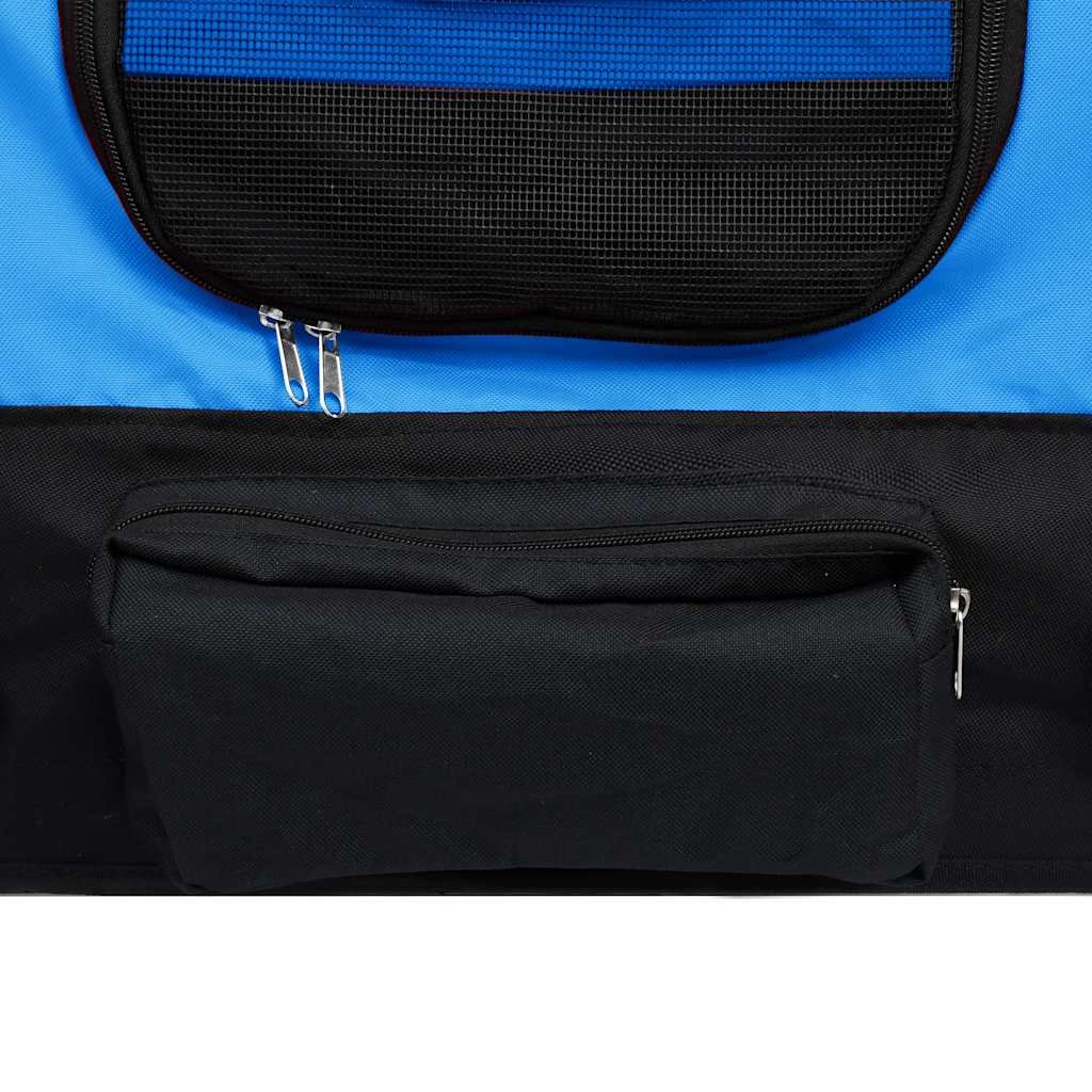 De huisdierenfietskar heeft een stevig stalen frame en is gemaakt van oxford stof, waardoor de kar duurzaam en gemakkelijk te onderhouden is. De mesh vensters aan beide kanten zorgen voor maximale luchtcirculatie, terwijl de voor- en achterkant beiden een ingang hebben voor het gemak. Deze huisdierentrailer heeft vering voor een soepele rit en een voorwiel dat 360 graden kan draaien voor tijdens het wandelen. De draaiende veiligheidsverbinding zorgt ervoor dat de trailer blijft staan, zelfs als de fiets omvalt. De dierenfietstrailer heeft een snelkoppeling om hem makkelijk aan een fiets te koppelen. De trekstang kan ingeklapt worden om ruimte te besparen.