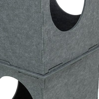 De Trixie Kattenhuis Toren Nele Vilt Grijs is een speels kattenhuis dat een heerlijke plek biedt om te klimmen, spelen en uit te rusten. Deze toren is gemaakt van stevig, vormvast vilt (polyester) en bestaat uit maar liefst drie verdiepingen met zes ingangen, waardoor je kat volop keuzemogelijkheden heeft om zich terug te trekken of de omgeving te verkennen. De toren is eenvoudig te monteren en past dankzij het moderne grijze design mooi in elk interieur.