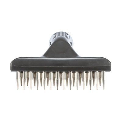 Deze metaalkam is door de dubbele rij vertandingen geschikt voor een nog intensievere verzorging van onderwol van honden met lang haar.