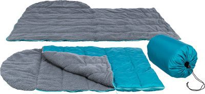 De Trixie Slaapzak Petrol / Grijs van 70X95 cm is een praktische slaapzak en ligmat in één, heerlijk zacht en compact op te rollen om mee te nemen. Warm of koud, deze handige slaapzak van Trixie komt altijd van pas. Deze slaapzak is van heerlijk zacht polyester dat aanvoelt als pluche. De slaapzak kan dichtgeritst gebruikt worden, zodat jouw dier er op koude dagen heerlijk in weg kan kruipen, maar ook opengeritst als ligmat (135X95 cm). Zo heeft jouw hond ook op warmere dagen of onderweg een fijn eigen plekje om te liggen. De slaapzak is compact op te rollen en in een praktische transporttas op te bergen om hem overal mee naartoe te nemen.