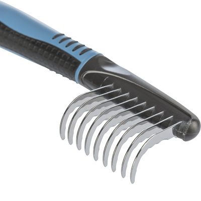 Fijne kam met gebogen vertanding en snijdende kartels voor het ontvilten en uitdunnen van de vacht. Deze kam is geschikt voor honden met lang haar.