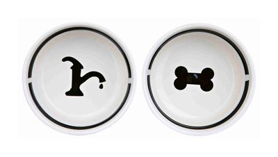 TRIXIE VOERBAK / DRINKBAK SET EAT ON YOUR FEET WIT / ZWART