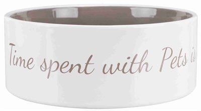 Vul deze voerbak met eten en jouw lieveling zal hem gretig leegeten. Op de voerbak staat in taupe kleurige letters de tekst "Time spent with pets is never a wasted".