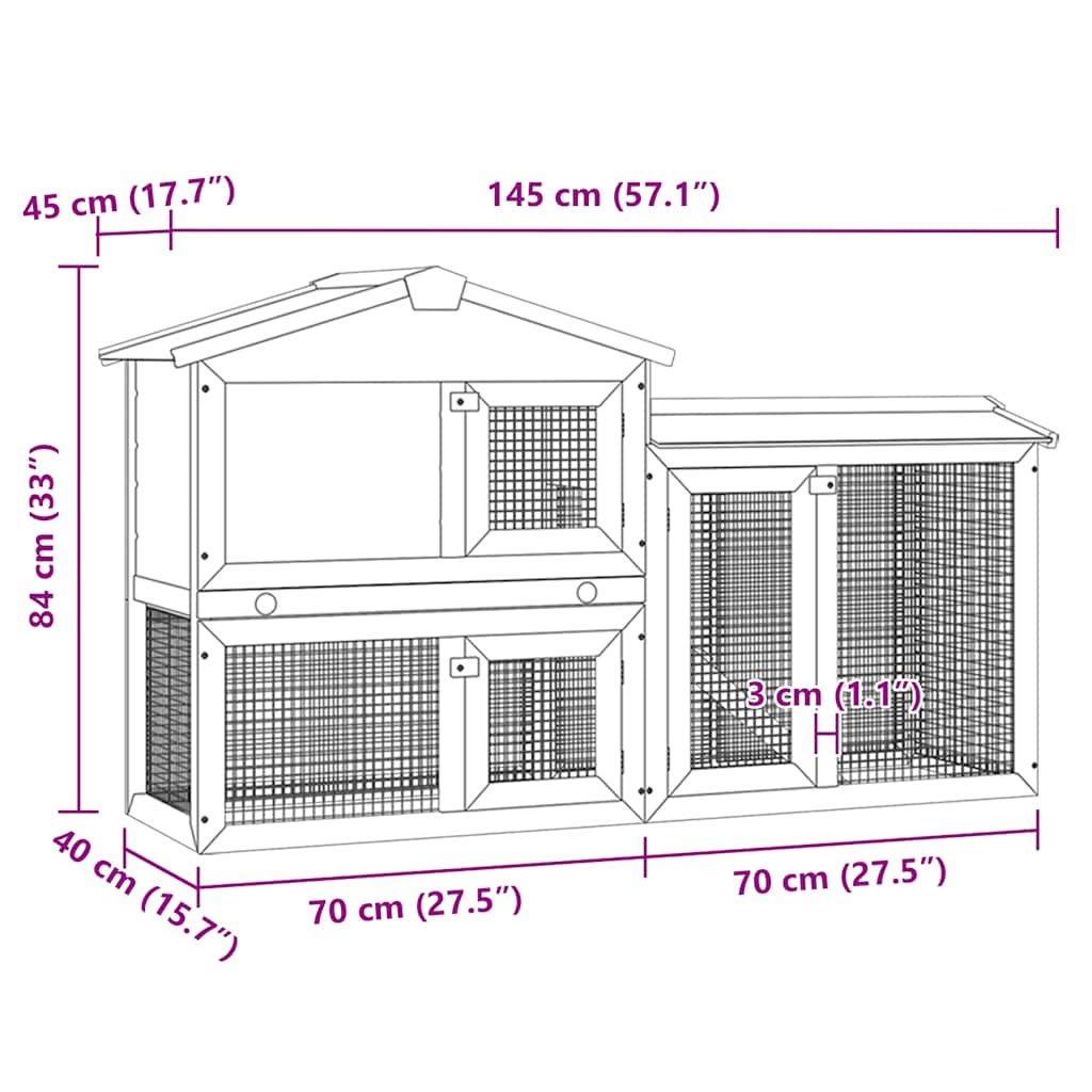 Zoonatie Konijnenhok voor buiten groot 145x45x84 cm hout bruin en wit